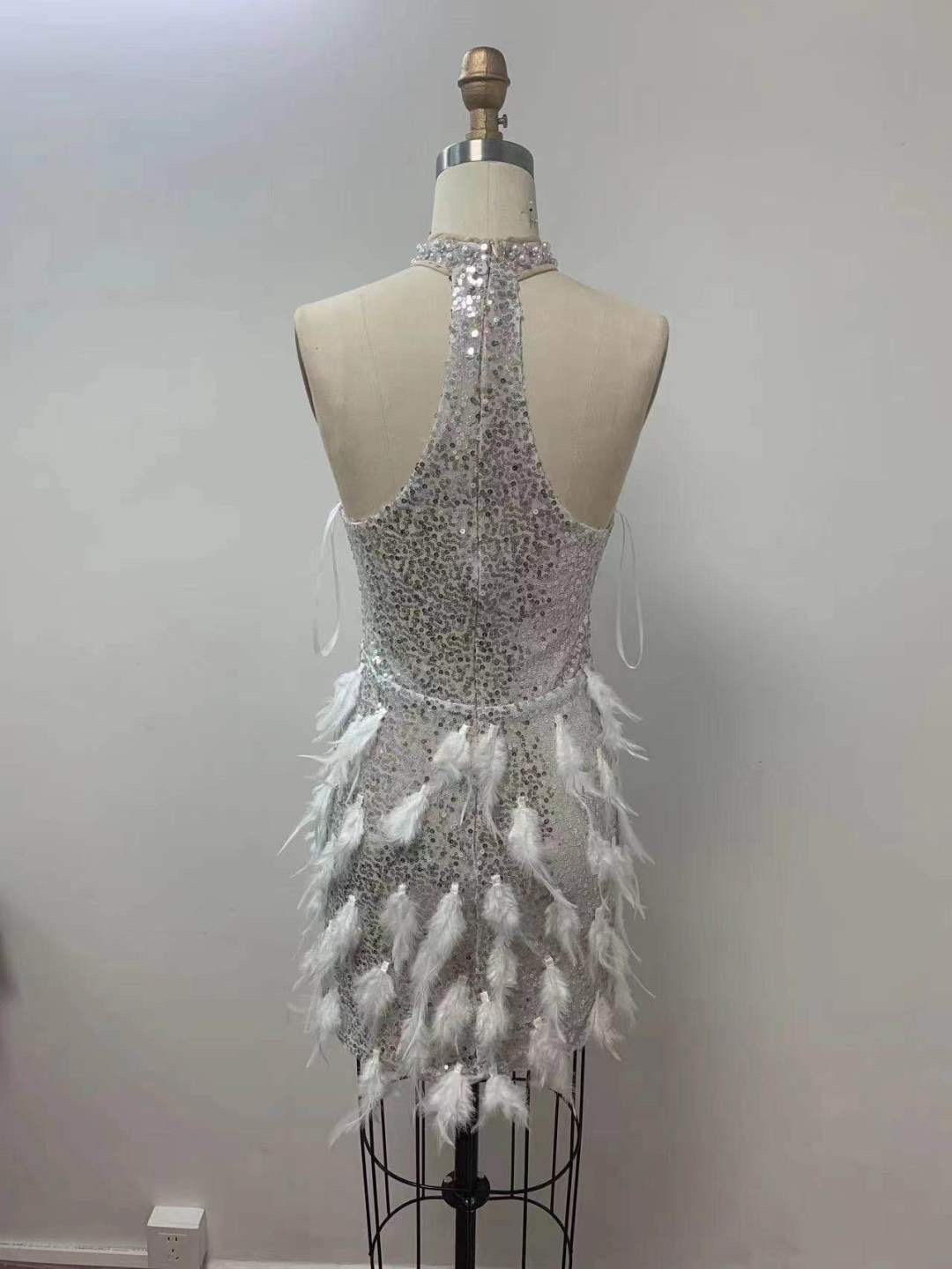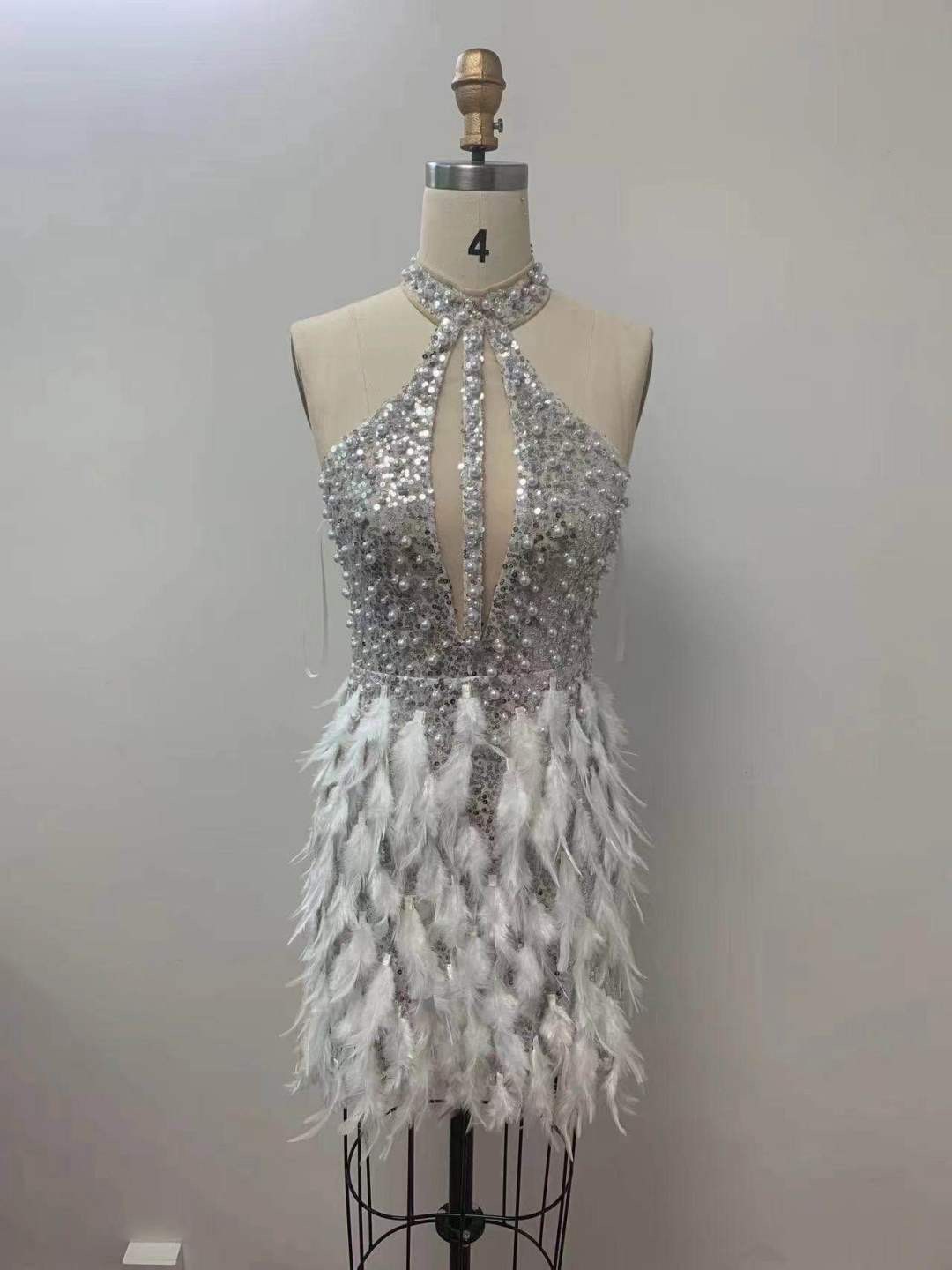 Abito Gioiello Piume Corto