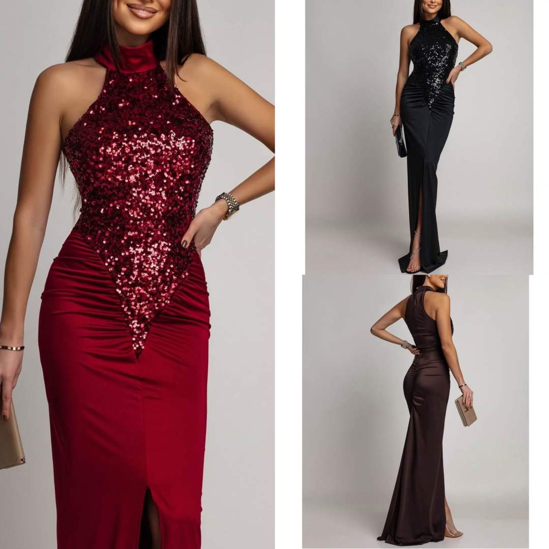 / Abito scollo all’americana Pailettes